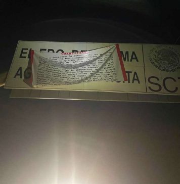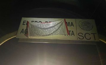 Coahuayana, Mich.- 27 de diciembre de 2025.- Varias narcomantas fueron localizadas colgadas en el arco del puente Coahuayana, mismo que divide a...