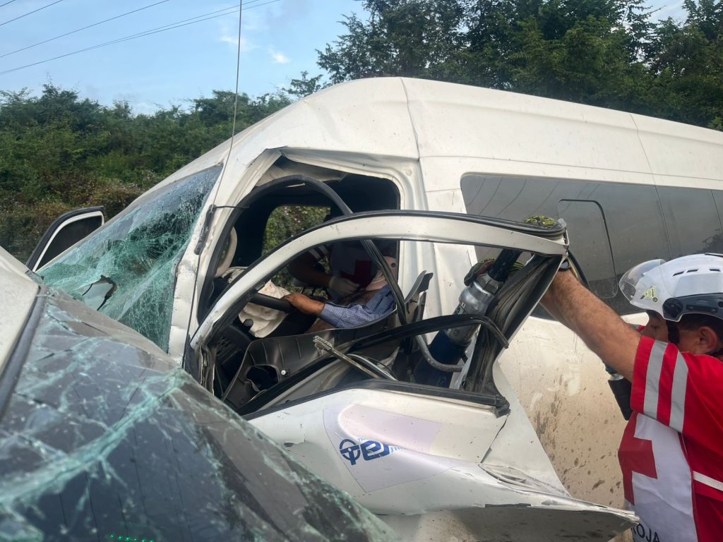 Lázaro Cárdenas, Mich.- 29 de Noviembre del 2025.- La mañana de este sábado, se registró un fatal accidente vehicular en la carretera Lázaro Cárdenas – La Mira, donde dos combis chocaron de frente, dejando como saldo tres personas fallecidas y 14 lesionados.