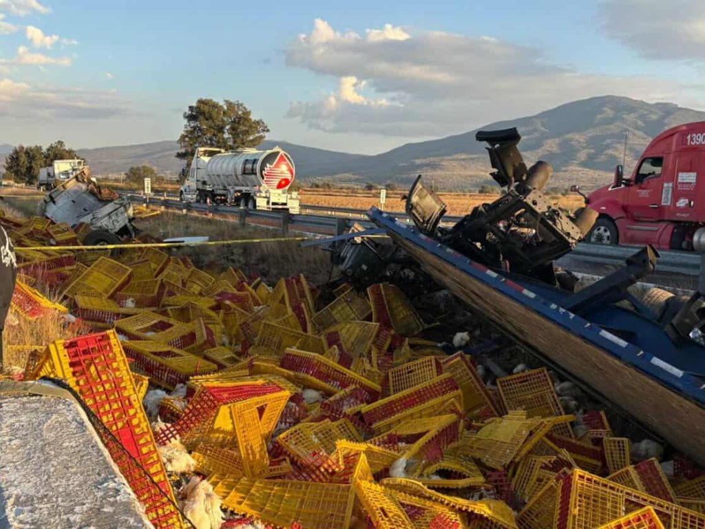 Ecuandureo, Mich.- Viernes 05 de diciembre de 2025.- Un tractocamión que transportaba pollos se accidentó sobre la autopista México-Guadalajara, a la altura del kilómetro 367, informaron autoridades policiales, las cuales agregaron que el chofer de la unidad perdió la vida.