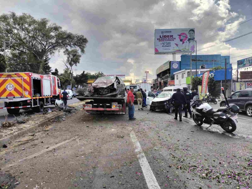 Morelia, Mich.- Lunes 01 de diciembre de 2025.- Dos vehículos protagonizaron un choque frontal sobre la avenida Morelos Norte, en la ciudad de Morelia, incidente que dejó un lesionado y varios daños materiales, trascendió en la cobertura de la noticia.