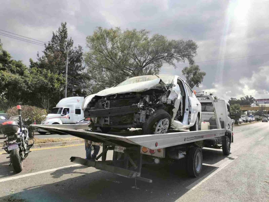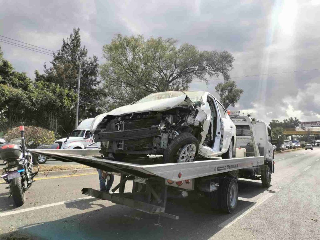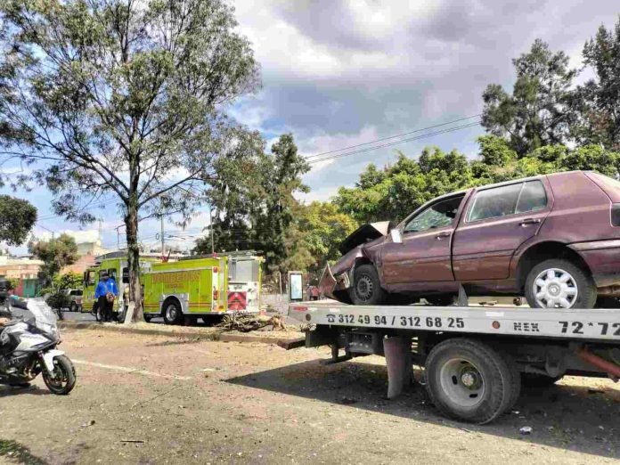La otra unidad involucrada es un Volkswagen Golf, color guinda, con matrícula HCN681E. Elementos de la Policía de Seguridad Vial realizaron el peritaje correspondiente para determinar responsabilidades.