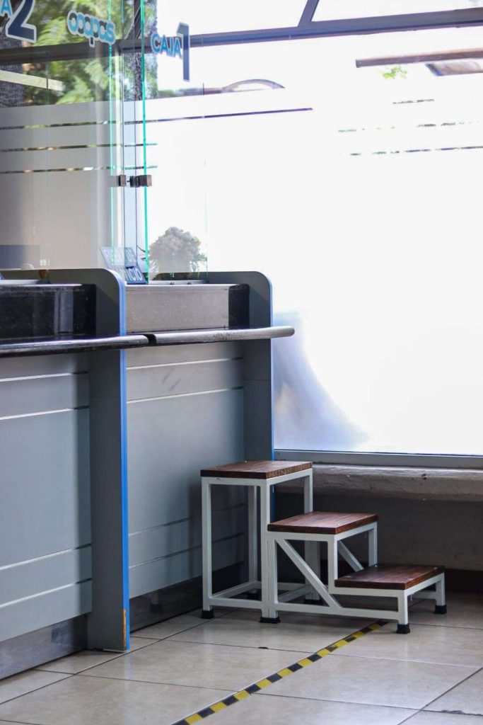 Entre estas acciones destacan la instalación de rampas, así como escalones en las cajas y módulos de atención, diseñados especialmente para que las personas de talla baja puedan realizar sus trámites de manera cómoda y segura.