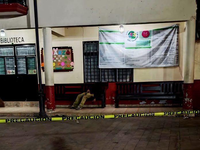 Uruapan, Mich.- 10 de marzo de 2026.- La madrugada de este martes, fue localizado el cadáver de un hombre de la tercera edad en una de las bancas de la plaza de la comunidad de Jicalán; aparentemente, el deceso fue por causas naturales.