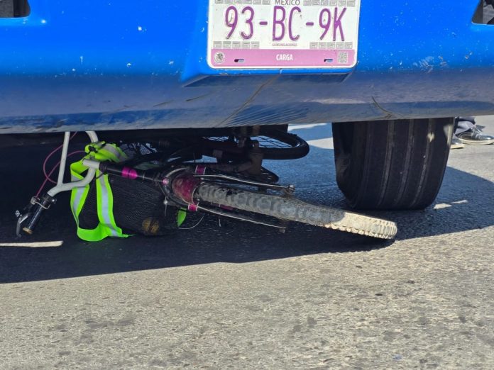 El afectado viajaba a bordo de una bicicleta color rosa con negro, misma que terminó debajo de la pesada unidad, una de la marca Kenworth color azul, con placas 93-BC-9K del servicio público federal, cuyo conductor fue requerido mientras se determinan responsabilidades.
