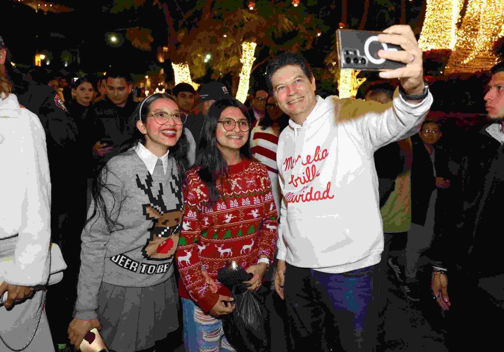 Acompañado de su esposa, la presidenta honoraria del DIF Morelia, Paola Delgadillo Hernández, el alcalde accionó el botón de encendido de las luces, que enseguida iluminaron los rostros de las morelianas y morelianos que se dieron cita al evento en el corazón de la ciudad.