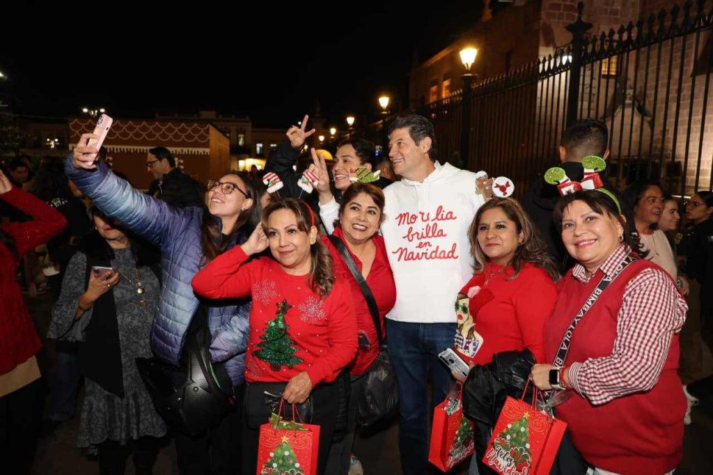 Morelia, Michoacán; 01 de diciembre de 2025.- Con música en vivo y juegos pirotécnicos alrededor de la Catedral de Morelia, el presidente municipal, Alfonso Martínez Alcázar, activó el Encendido Navideño “Luces por la Paz” que hizo brillar más de dos millones de luces en el centro histórico ante la alegría de cientos de familias.