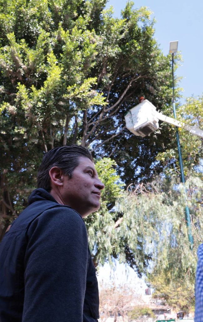 Morelia, Michoacán; 4 de febrero de 2026.-El Presidente Municipal de Morelia, Alfonso Martínez Alcázar, realizó un recorrido desde el cruce de Avenida Solidaridad y Cuautla, donde las brigadas de la Secretaría de Servicios Públicos Municipales llevan a cabo labores de poda de árboles.