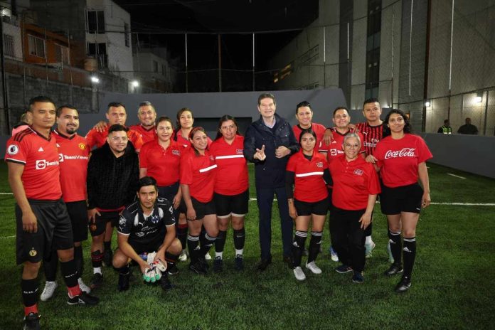 Tras saludar a los líderes transportistas José Trinidad Martínez Pasalagua y Karla Martínez Martínez, el edil anunció que la cancha también podrá ser usada por trabajadores del volante, en el objetivo de que así se crea comunidad y se construye la paz.