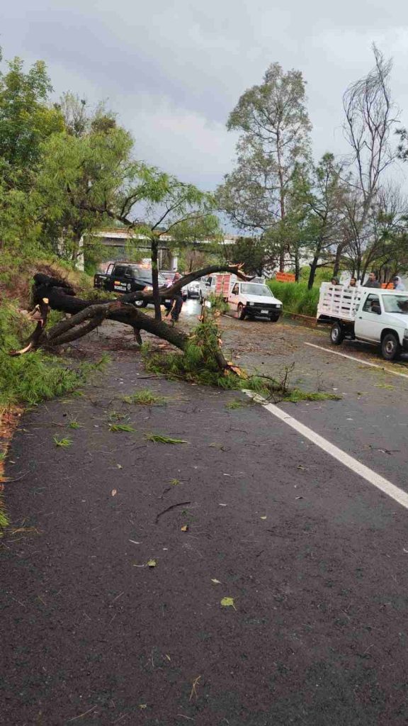 Morelia, Mich.- Martes 07 de octubre de 2025.- La caída de un árbol interrumpió por varios minutos la circulación vehicular sobre los carriles de la carretera Morelia-Pátzcuaro, en el sentido de Uruapilla hacia ma capital michoacana, informaron fuentes policiales y de rescate.