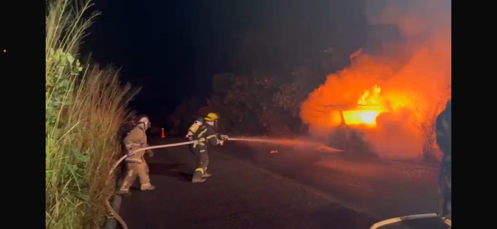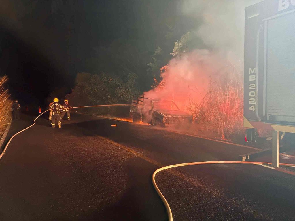 Tacámbaro, Mich.- Lunes 01 de diciembre de 2025.- Debido a una falla mecánica, una camioneta se incendió durante la noche de ayer domingo sobre la carretera Tacámbaro–Puruarán, indicaron fuentes de rescate y policiales.