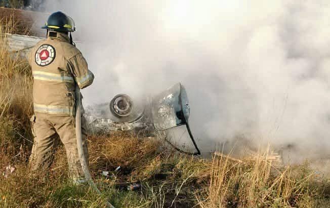 Maravatío, Mich.- Martes 09 de diciembre de 2025.- Una camioneta se incendió tras volcar sobre la carretera Maravatío–Taranda, percance que no dejó lesionados, únicamente daños materiales, informaron autoridades policiales.