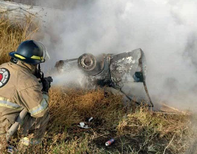 Posteriormente arribaron los bomberos de Protección Civil, quienes combatieron la lumbre y la sofocaron. La unidad terminó totalmente calcinada e inservible.
