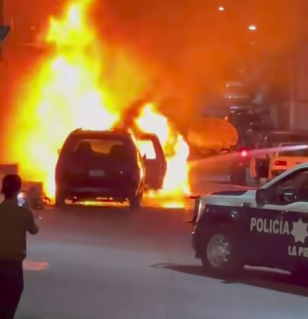 La Piedad, Mich.- 04 de diciembre del 2025.- La madrugada de este jueves, una camioneta que estaba estacionada terminó convertida en chatarra, tras un voraz incendio en el Barrio de Las Colonias, municipio de La Piedad.
