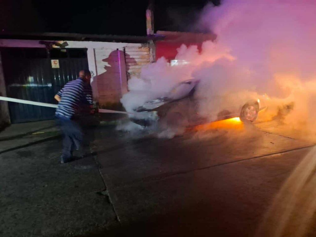 Zitácuaro, Mich.- Martes 18 de noviembre de 2025.- Un vehículo Volkswagen Jetta ardió en llamas durante la madrugada de este martes en la colonia El Moral, perteneciente a la ciudad de Zitácuaro, informaron fuentes de rescate.