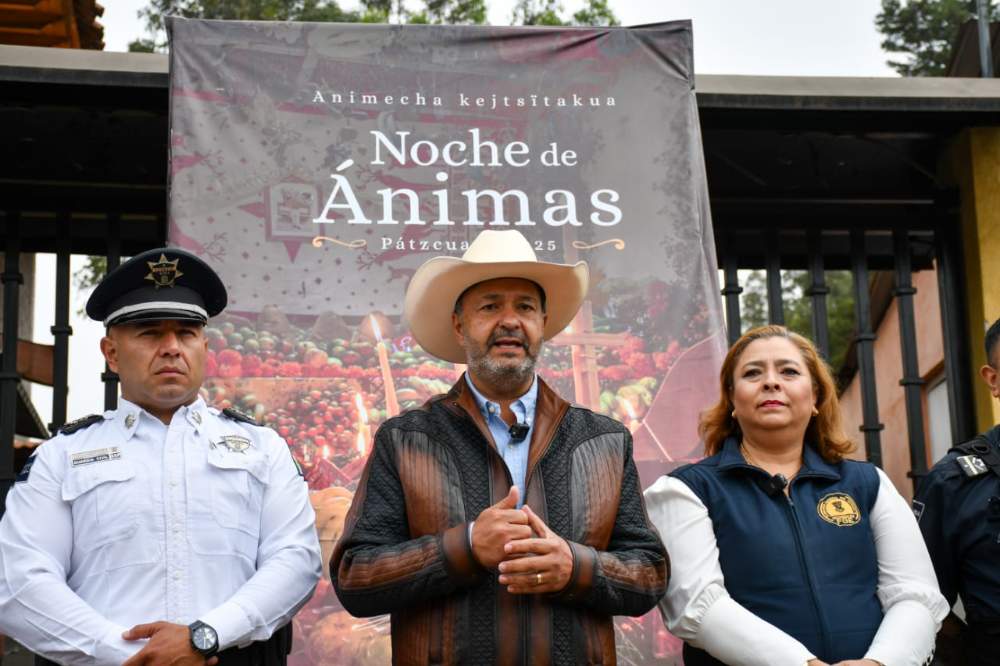 Acompañado por autoridades estatales y federales, entre ellas la Fiscalía General del Estado, la Secretaría de Seguridad Pública, Protección Civil Estatal, PROFECO, Capitanía de Puerto y la Secretaría de Turismo, el alcalde destacó que la Noche de Ánimas representa el corazón cultural y espiritual de Pátzcuaro y la región lacustre.