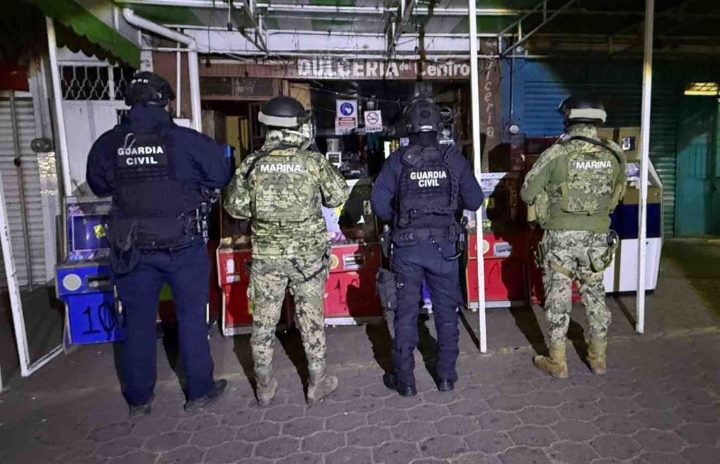 Zamora, Michoacán, 12 de enero de 2026.- Dentro de las acciones que forman parte de la estrategia contra la extorsión, las secretarías de Seguridad Pública (SSP) y de Marina (Marina) brindaron acompañamiento a la Fiscalía General del Estado (FGE) en la cumplimentación de órdenes de cateo en 10 domicilios, donde se aseguraron 52 máquinas tragamonedas en Zamora.