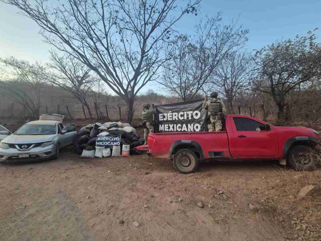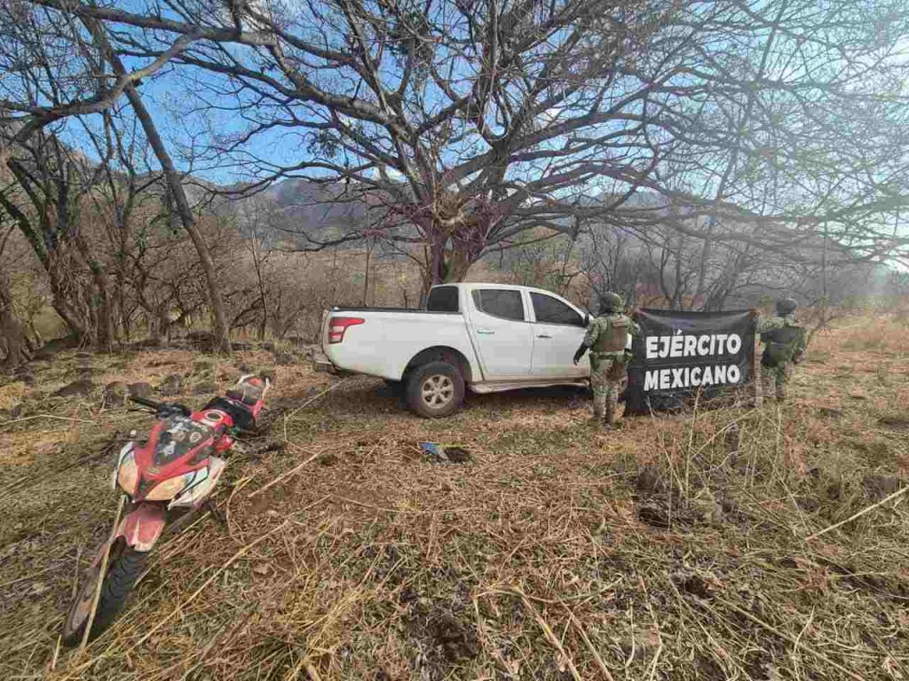 Turicato, Mich.- 9 de febrero de 2026.- En un despliegue de seguridad realizado en la región de Tierra Caliente, los elementos de la Guardia Nacional y del Ejército Mexicano lograron el aseguramiento de droga y vehículos durante patrullajes de vigilancia en una zona rural del municipio de Turicato.
