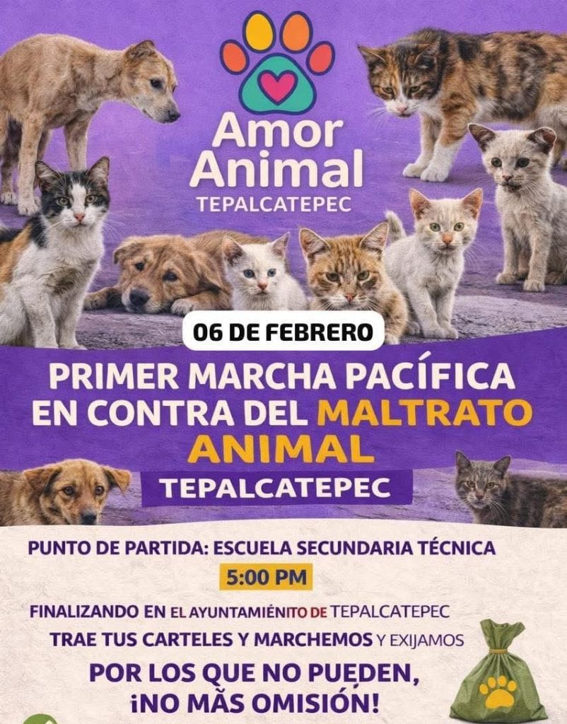 Por su parte, Amor Animal Tepalcatepec realizará su primera marcha pacífica en contra del maltrato animal el 6 de febrero.