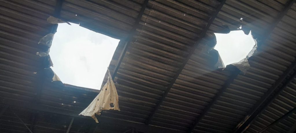 Asimismo, en la techumbre de lámina metálica quedaron boquetes, probable generados por artefactos explosivos; además, sobre la pista había estrellas ponchallantas. Afortunadamente el hecho de violencia no dejó lesionados ni fallecidos.