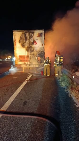 De acuerdo con el reporte oficial, unos automovilistas alertaron a las autoridades sobre un tráiler en llamas en el punto mencionado, lo que movilizó de inmediato a los cuerpos de emergencia.