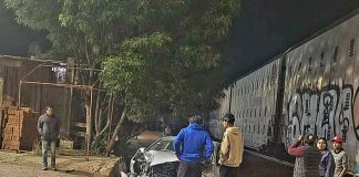 Auto es impactado por el tren en Tzurumútaro, Pátzcuaro