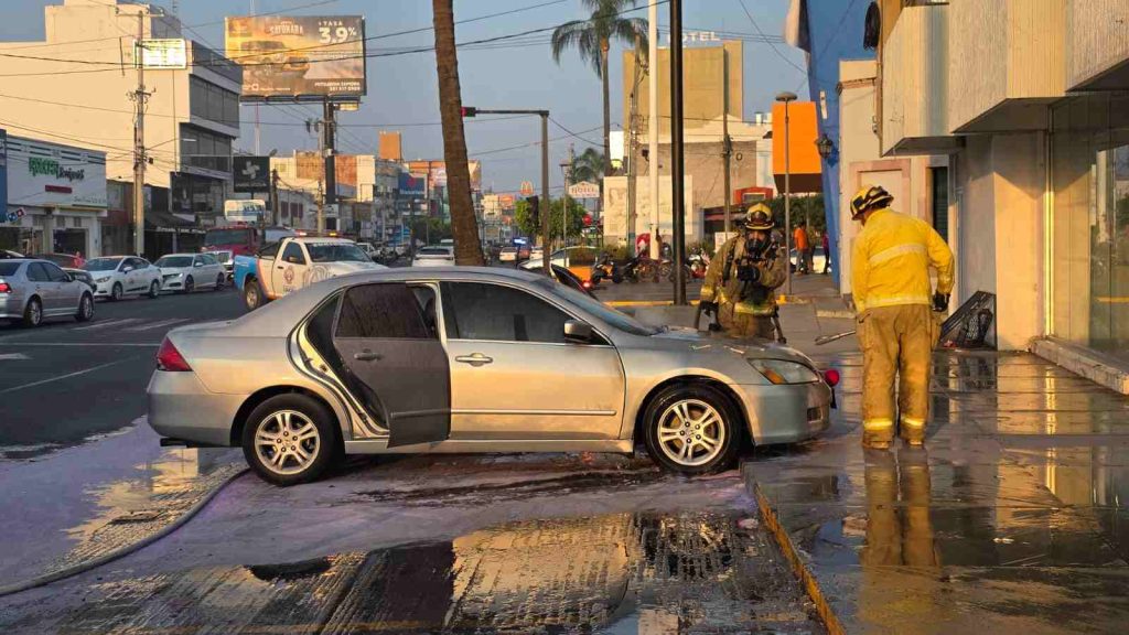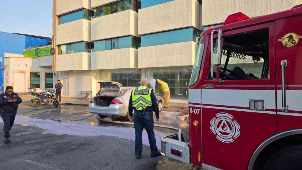 Zamora, Mich.- 27 de noviembre de 2025.- La mañana de este jueves un vehículo que se encontraba estacionado se incendió al parecer debido a una falla mecánica, según lo informado por fuentes policíacas.