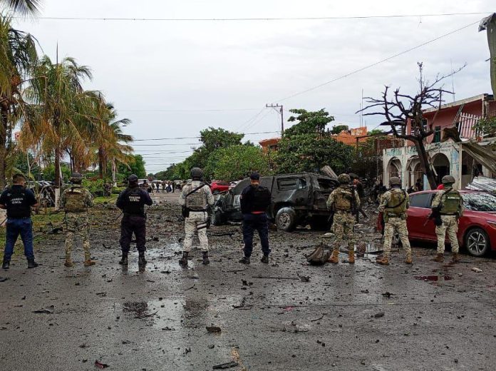 Coahuayana, Michoacán, 6 de diciembre de 2025.- La Guardia Nacional, la Secretaría de la Defensa Nacional, la Secretaría de Marina y la Secretaría de Seguridad Pública estatal, mantienen la seguridad y el control del municipio de Coahuayana, ante un artefacto explosivo accionado.