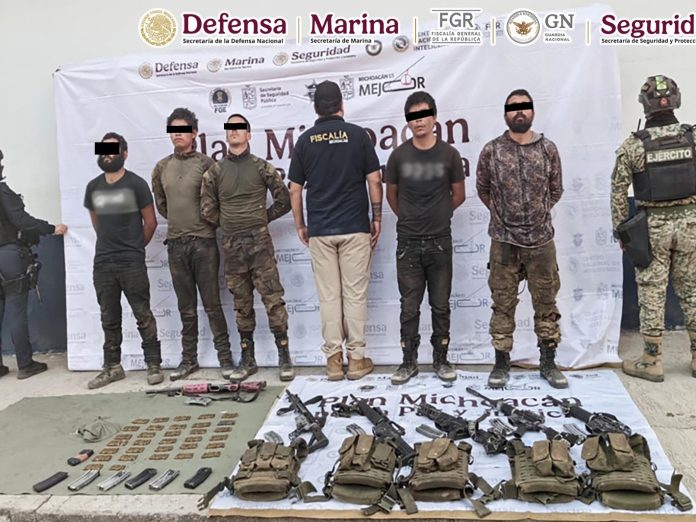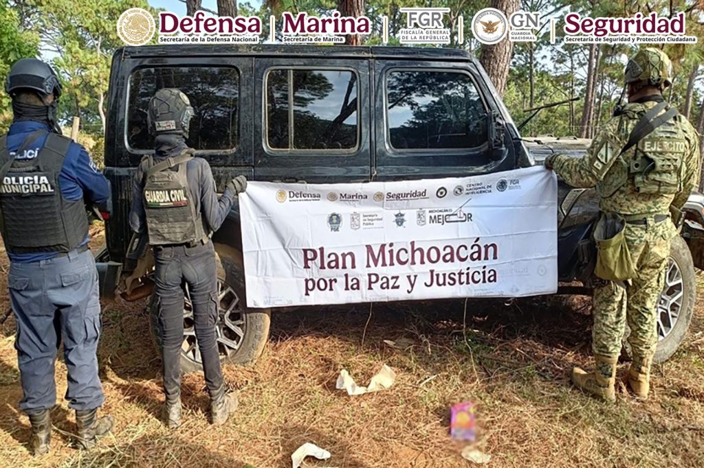 Como parte de las acciones operativas del Plan Michoacán por la Paz y la Justicia, elementos de la Secretaría de la Defensa Nacional (Defensa) y de la Guardia Nacional (GN), en coordinación con la Secretaría de Marina (Semar), la Secretaría de Seguridad y Protección Ciudadana (SSPC), la Fiscalía General de la República (FGR), así como con la Secretaría de Seguridad Pública (SSP) y la Fiscalía General del Estado (FGE), detuvieron a nueve personas y aseguraron 10 armas de fuego, 18 cargadores, 459 cartuchos y tres vehículos.