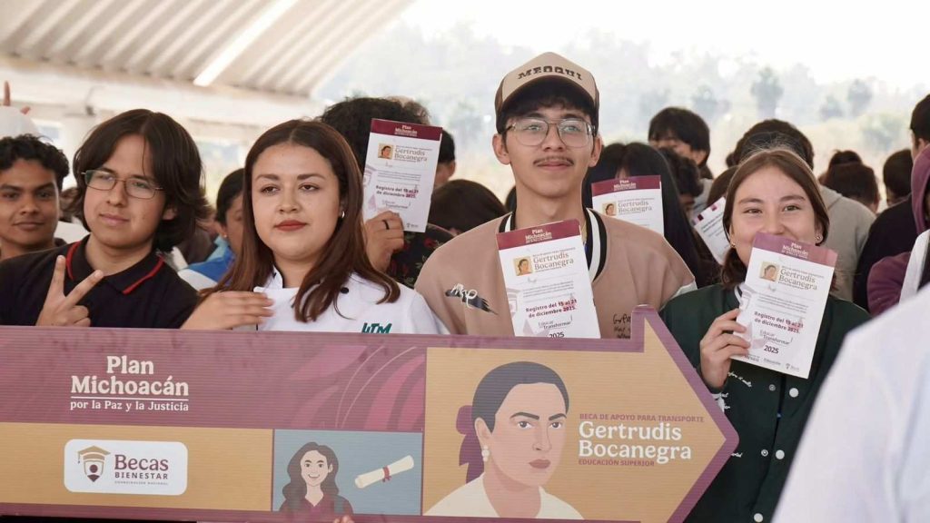 Sosa Olmeda explicó que esta beca forma parte del Plan Michoacán por la Paz y la Justicia, impulsado por la presidenta Claudia Sheinbaum Pardo y el gobernador Alfredo Ramírez Bedolla, y que otorgará a partir de marzo un apoyo de mil 900 pesos bimestrales a estudiantes de instituciones públicas de nivel superior, con el propósito de reducir la desafiliación escolar e impulsar su permanencia académica.