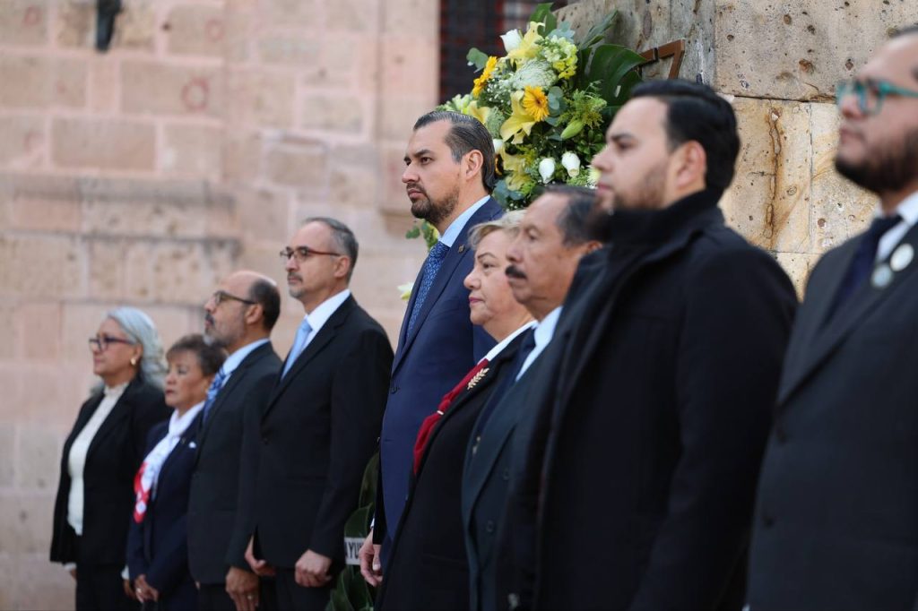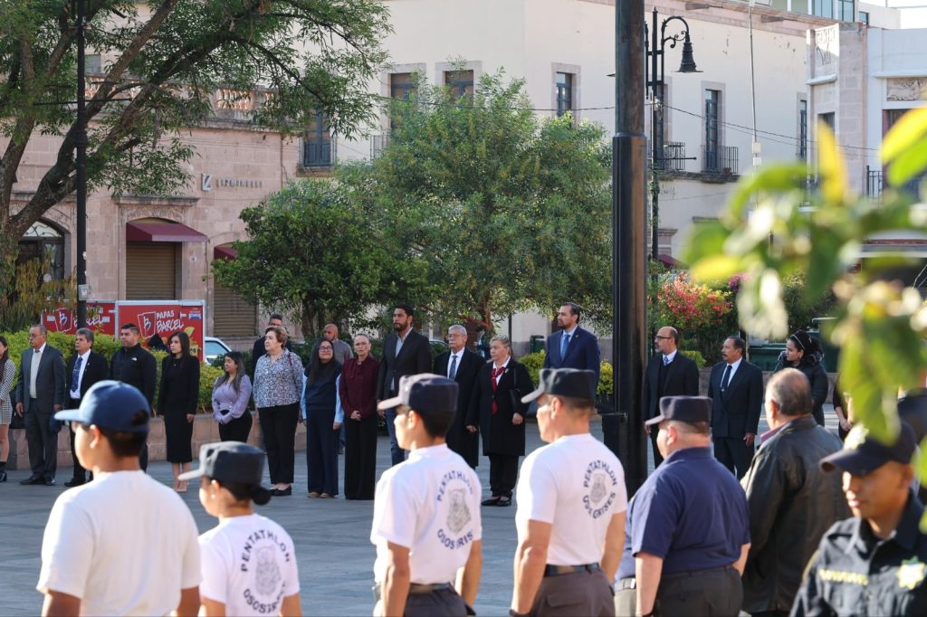 Cabe señalar que previamente se llevó a cabo el izamiento de bandera en la Plaza Melchor Ocampo y, al término de la ceremonia cívica, se cumplió con el tradicional depósito de ofrenda floral.