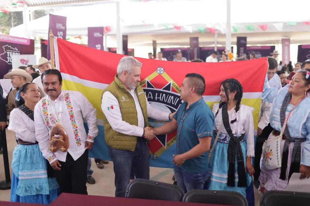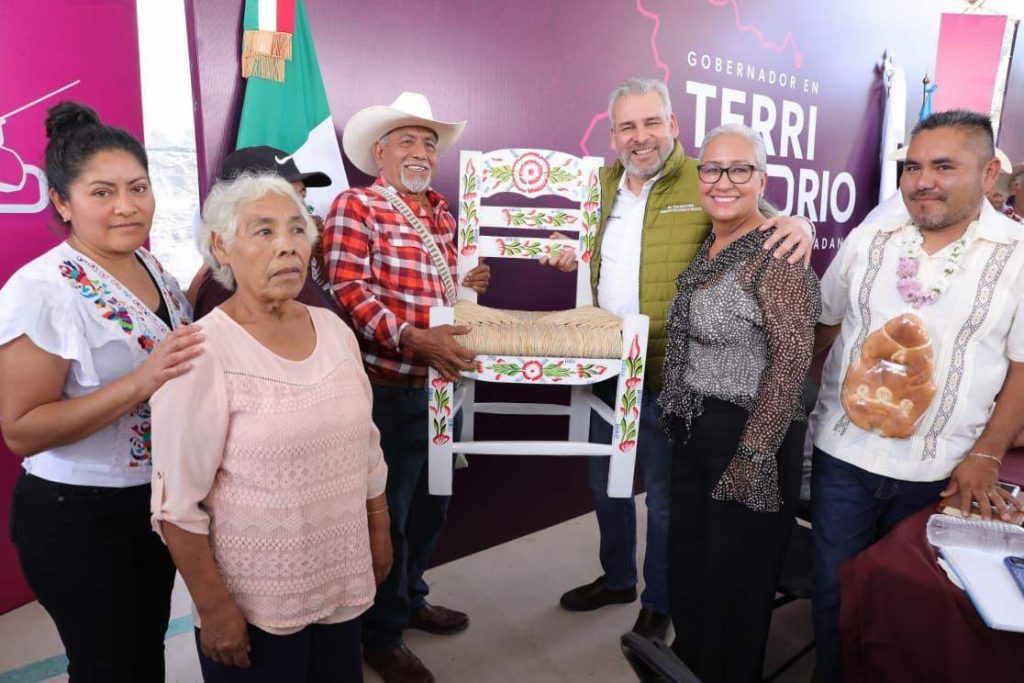 Acompañado por su gabinete legal y ampliado, autoridades municipales y comunales, y por la diputada local, Emma Rivera Camacho, el mandatario recibió peticiones en materia de agua, campo, medio ambiente, migración, educación, economía y obras, entre otras solicitudes de los pueblos de esta región, quienes lo recibieron con una ceremonia tradicional indígena.