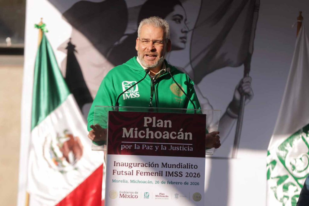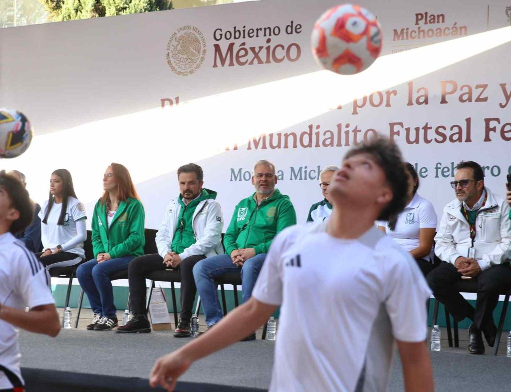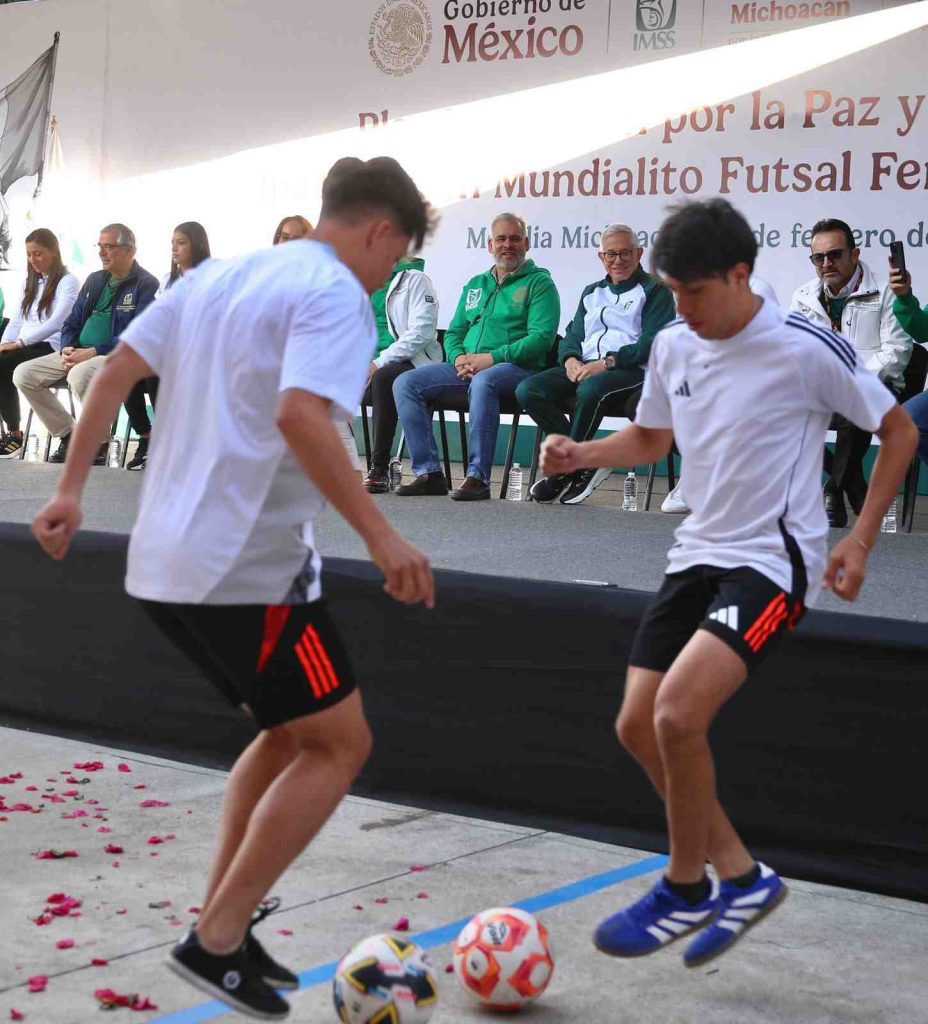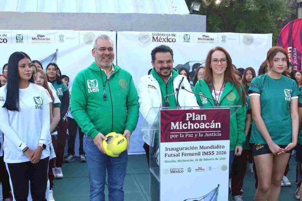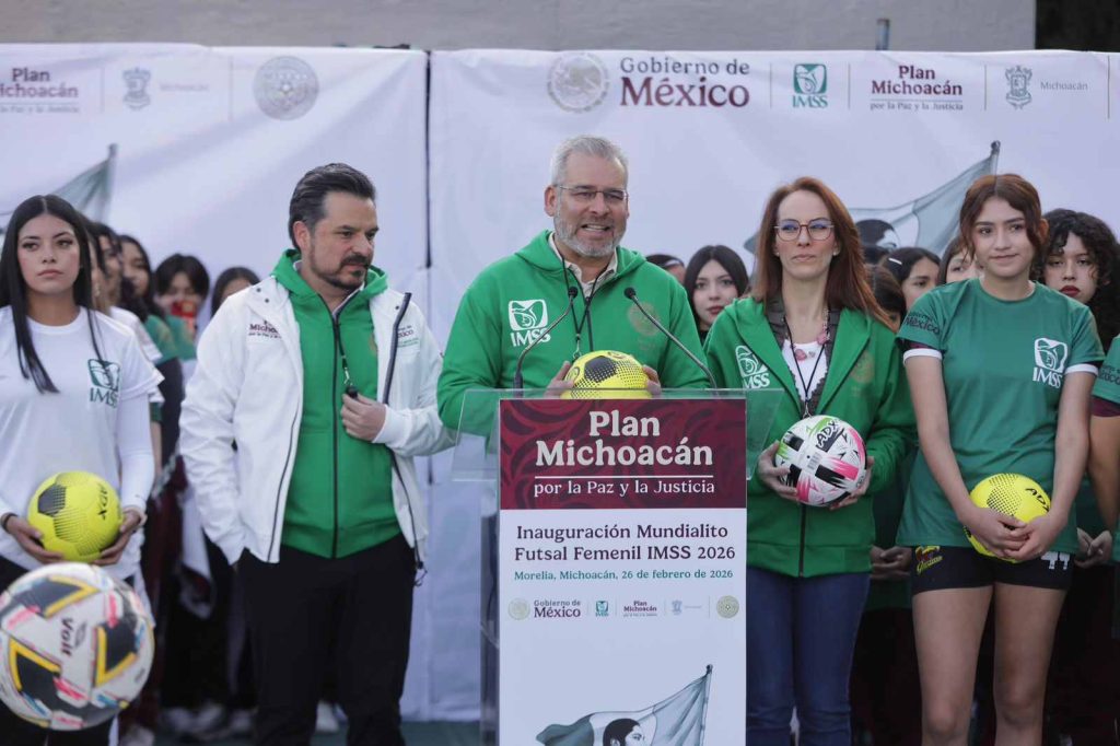 Morelia, Michoacán, 26 de febrero de 2026.- En Michoacán se dio la patada inaugural del Mundialito Futsal Femenil IMSS, que forma parte del Mundial Social México 2026, una iniciativa de la presidenta Claudia Sheinbaum Pardo, para llevar este deporte de los estadios a los espacios públicos, destacó el gobernador Alfredo Ramírez Bedolla.
