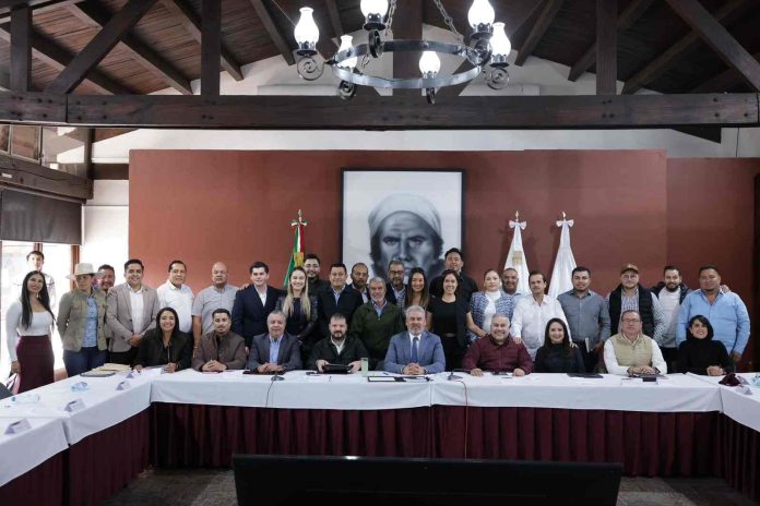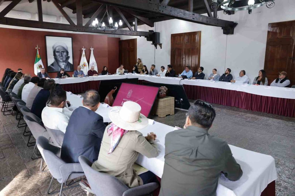 Morelia, Michoacán, 12 de diciembre de 2026.- El gobernador Alfredo Ramírez Bedolla y presidentas y presidentes municipales de Morena, reconocieron avances de las acciones del Plan Michoacán por la Paz y la Justicia de la presidenta Claudia Sheinbaum Pardo y refrendaron su respaldo para continuar aliados por el desarrollo del estado.