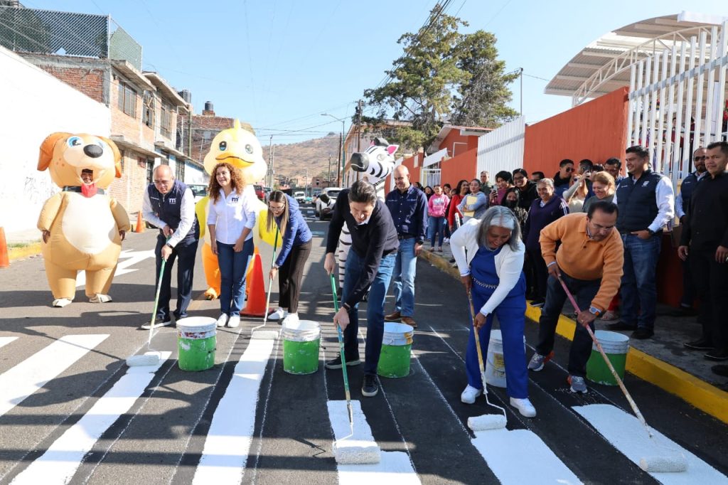 En ese sentido, el presidente Alfonso Martínez encabezó el balizamiento de cebras peatonales en la calle principal, para que los docentes y las familias cuenten con mayor seguridad vial al arribar a la escuela.