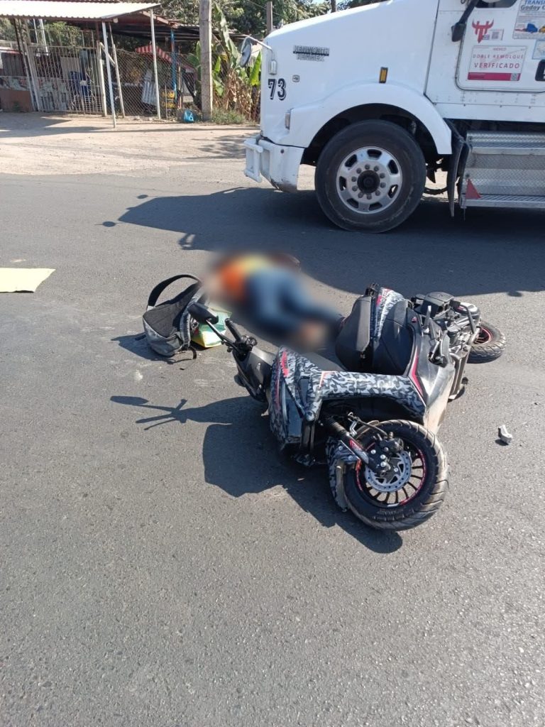 Lázaro Cárdenas, Mich.- 20 de febrero de 2026.- La tarde de este viernes, una mujer motociclista murió tras ser arrollada por un camión de carga que se dio a la fuga, en la salida de Lázaro Cárdenas, hacia la autopista Siglo XXI.