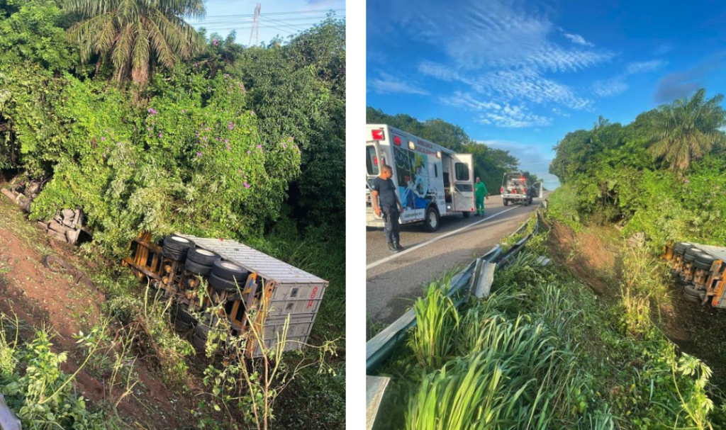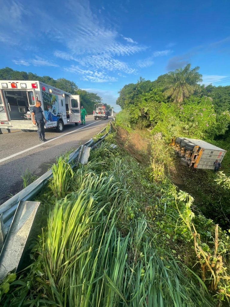 De acuerdo con los reportes, el incidente se registró en el kilómetro 298, lo que provocó la movilización de las unidades de emergencia y las autoridades locales. El personal de AMBUMED acudió al sitio y localizó al conductor, identificado como Aníbal, de 24 años de edad, quien se encontraba fuera del vehículo, un camión Kenworth blanco con placas 82-AF-9X.