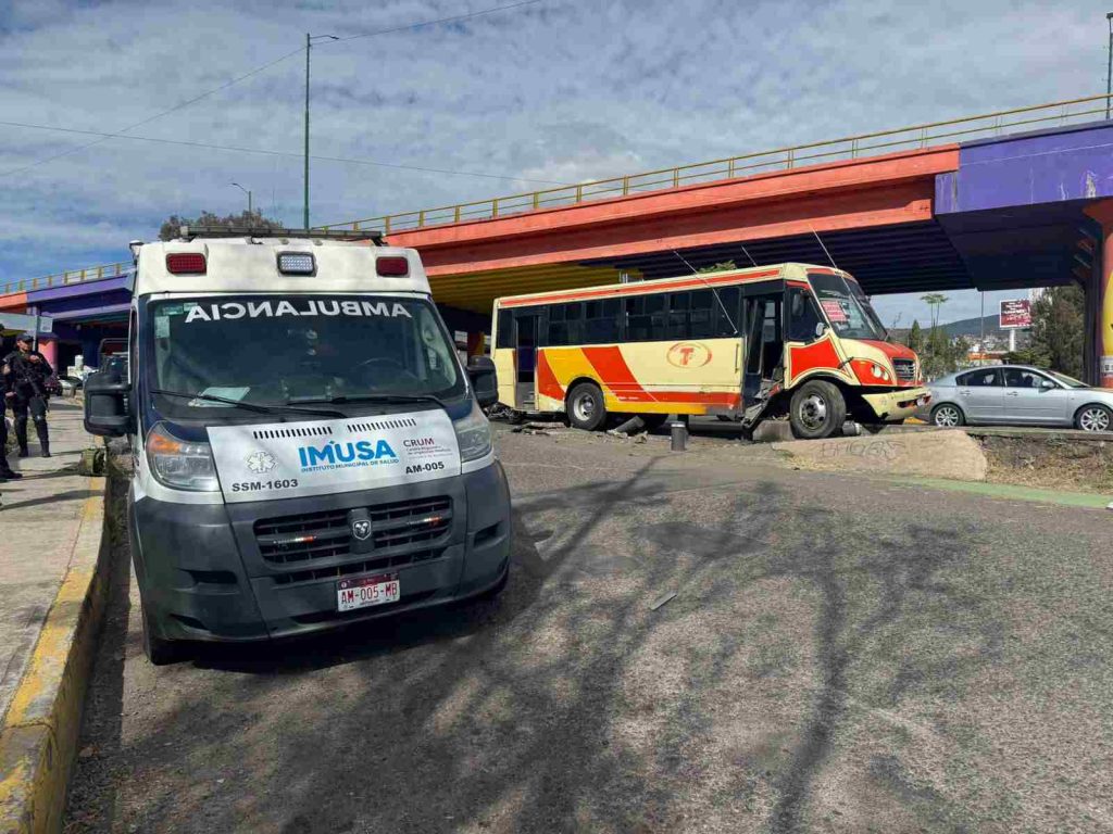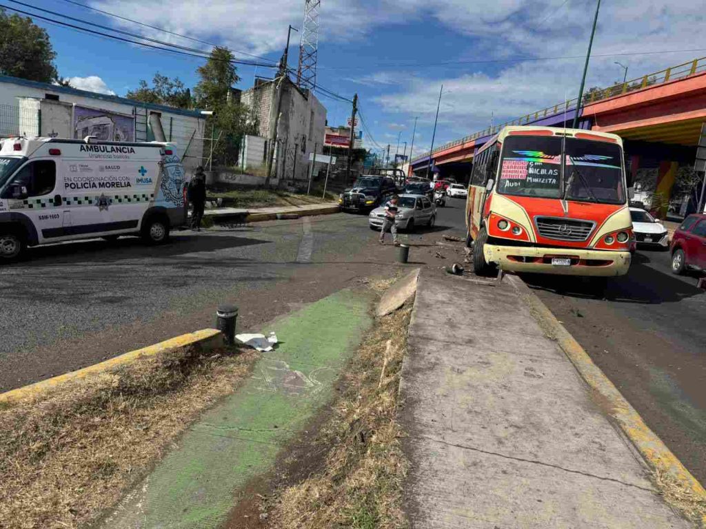 Morelia, Mich.- Domingo 07 de diciembre de 2025.- El chofer de un camión del transporte público urbano chocó contra unos bolardos de la ciclovía ubicada en el Distribuidor Vial Salida a Quiroga, al poniente de Morelia. El incidente dejó a tres menores levemente lesionados, informaron fuentes de rescate y policiales.