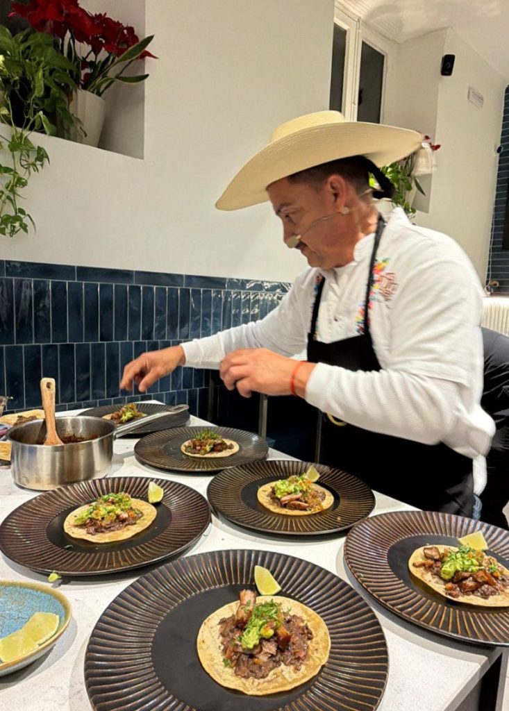 Roberto Monroy García, titular de la Secretaría de Turismo de Michoacán (Sectur), quien encabeza los trabajos promocionales y de negocios de la comitiva michoacana, señaló que el encargado de representar a “el alma de México” fue Sergio Olivo, originario de Quiroga, quien se unió a Roberto Martínez, de España, para preparar los mejores tacos con carnitas michoacanas como ingrediente principal.