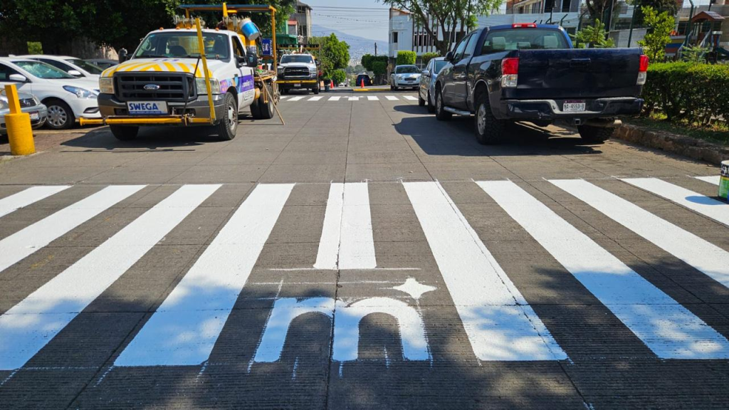 Este día, se realizaron trabajos en la Plaza Morelos de la Tenencia Morelos, donde se llevó a cabo el trazo y balizamiento para delimitar pasos peatonales, rampas para personas con discapacidad, restricciones en esquinas y reductores de velocidad. Estas acciones permiten ordenar la circulación, mejorar la visibilidad de los cruces y brindar mayor seguridad, especialmente a peatones y grupos prioritarios.