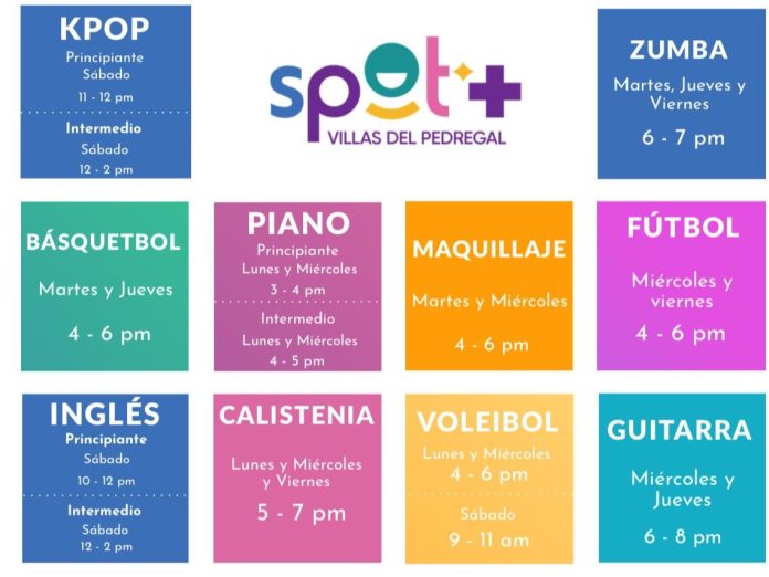 Entre las opciones disponibles se encuentran producción musical, guitarra, canto, batería, fútbol, voleibol, calistenia, patinaje, danza urbana, teatro, maquillaje, artes plásticas, vuelo de drones, talleres gastronómicos, mixología y muchas más actividades que cubren intereses musicales, deportivos, culturales, artísticos y tecnológicos.