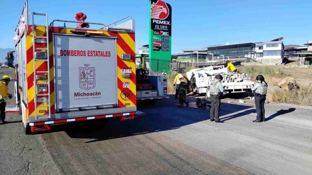 Elementos de la Coordinación Estatal de Protección Civil Michoacán (CEPCM) acudieron al sitio y con sus herramientas liberaron al chofer, quien estaba atrapado en la cabina. Después, unos paramédicos atendieron al afectado.