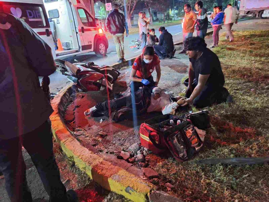 Fue en el cruce con la calle Prolongación Insurgentes donde ocurrió la colisión entre una motocicleta de la marca Italika, de colores negro con rojo, conducida por la fémina y la otra unidad color blanco, tripulada por el joven.