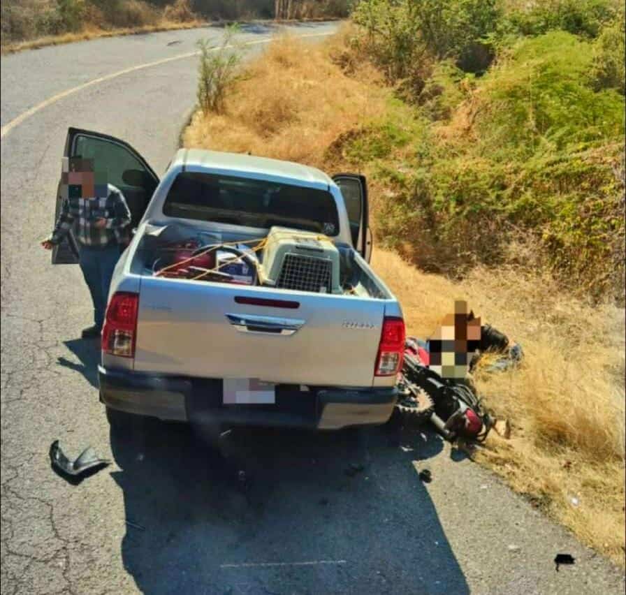 Tiquicheo, Mich.- Jueves 18 de diciembre de 2025.- Una camioneta y una motocicleta protagonizaron un aparatoso choque sobre la carretera Tiquicheo–Tuzantla, incidente que dejó dos mujeres lesionadas, quienes viajaban en el referido motociclo, indicaron fuentes de rescate y policiales.