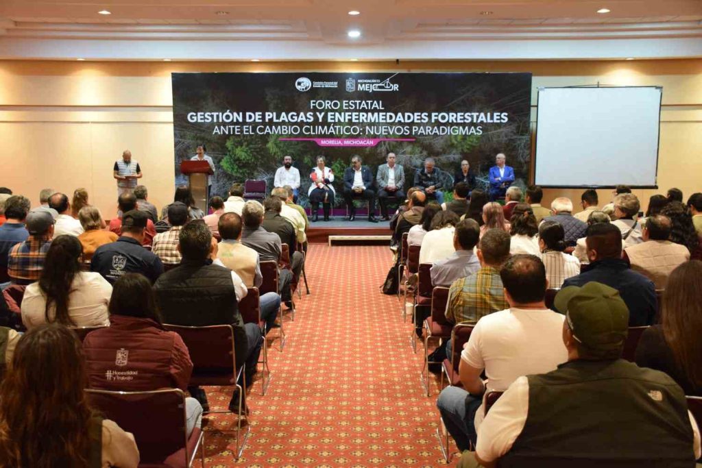 Morelia, Michoacán, 8 de octubre de 2025.- Para fortalecer el cuidado en sanidad forestal de los bosques, la Comisión Forestal del Estado (Cofom) lleva a cabo el Foro Estatal Gestión de Plagas y Enfermedades Forestales Ante el Cambio Climático.