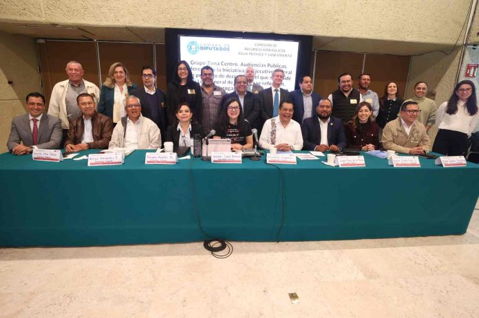 Como parte de las audiencias públicas sobre la iniciativa presidencial que expide la Ley General de Aguas y modifica la Ley de Aguas Nacionales, organizadas por la Comisión de Recursos Hidráulicos, Agua Potable y Saneamiento, se instalaron tres grupos de trabajo para abordar el tema “Régimen de concesiones: concesionarios, volúmenes, distribución, usos del agua y descargas asociadas”, con aportaciones de ponentes de las zonas centro, sur y norte del país.
