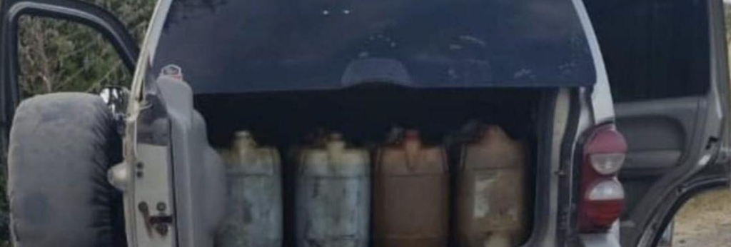 En Sahuayo, agentes de la SSP detuvieron a dos hombres que viajaban en un vehículo Jeep, como resultado de trabajos de inteligencia realizados en la colonia Llanos, donde se localizaron dos armas largas, 20 cartuchos útiles, y 20 garrafas llenas de hidrocarburo, con un aproximado de 400 litros de combustible ilícito.