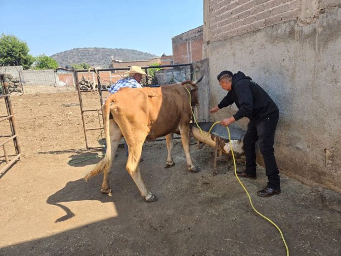 Productores ganaderos de las tenencias de Cuto de la Esperanza y Chiquimitío, se beneficiaron con inseminación artificial para sus bovinos, con el objetivo de incrementar la producción pecuaria de la zona rural de Morelia, lo que les permite generar mejores ingresos económicos.