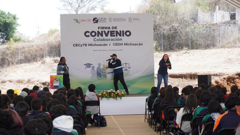 Atestiguaron la firma de este convenio, la secretaria ejecutiva de la Comisión Estatal de los Derechos Humanos de Michoacán, Maricela Núñez Alcaraz, y, Enrique Urbina Ortega, director de vinculación de la Dirección General del CECyTE Michoacán.