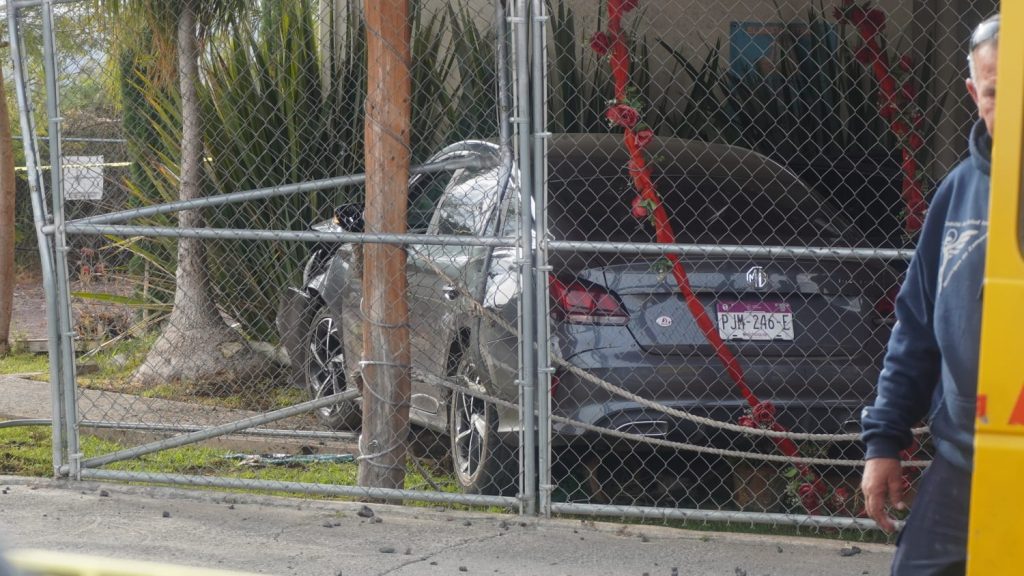 La unidad de baleada, un MG, modelo 2024, de color gris, con placas PJM-246-E, ya sin control terminó por impactar contra el citado negocio, mientras que los hechores se dieron a la fuga.