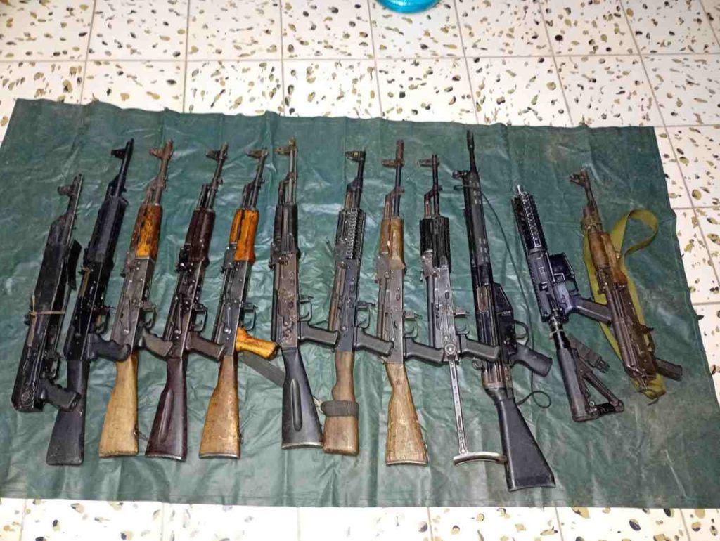 En el sitio fueron aseguradas 14 armas de fuego largas, entre ellas dos fusiles calibre .50 milímetros, considerados de uso exclusivo de las Fuerzas Armadas, así como 148 cargadores, cartuchos de diversos calibres y tres vehículos presuntamente vinculados a actividades ilícitas.